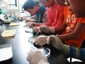 5月21日河北师范大学生命科学学院举办了“实验室开放日”科普活动,来自石家庄10几所中、小学生及社区居民共计322人次参加了此次活动,生命科学学院多个学科的科研及教学骨干教师参与。生命科学学院管振龙教授、孙颖教授、尚忠林教授、鞠建松教授、周春江教授、谢启光教授立足自身研究领域分别作了《从学习记忆的机理谈谈学习》、《水稻的一生》、《神奇的光合作用》、《微生物与人类健康》、《走近转基因世界》、《生物钟探秘》六个主题科普讲座。志愿者们带领大家参观细胞生物学国家重点学科实验室平台、观看标本展览、显微镜操作和切片观察、实验动物解剖、水稻生活史系列材料观察、实验田地参观等科普活动。【详细】